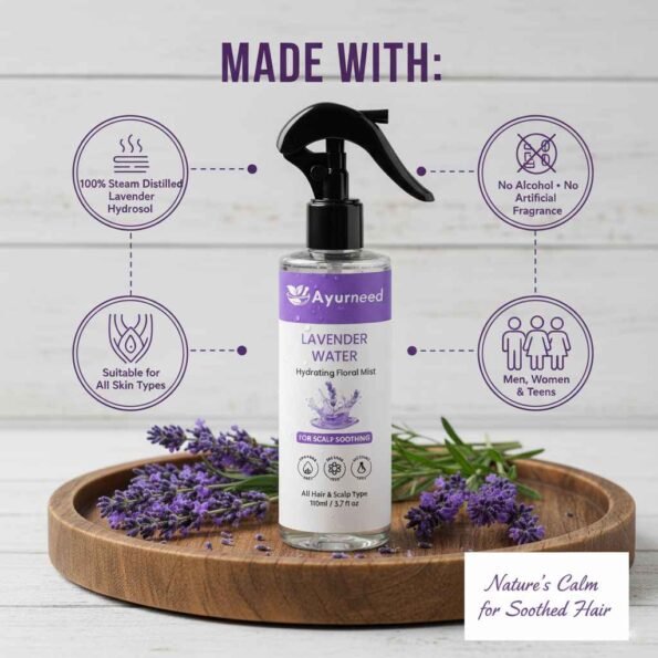 Soothe your skin and calm your senses with Ayurneed™ Lavender Water Spray – a gentle, 100% natural, steam-distilled hydrosol. Known for its skin-loving and aromatherapeutic properties, this refreshing mist hydrates, tones, and relaxes — making it the perfect all-day companion for glowing skin and peaceful mood.