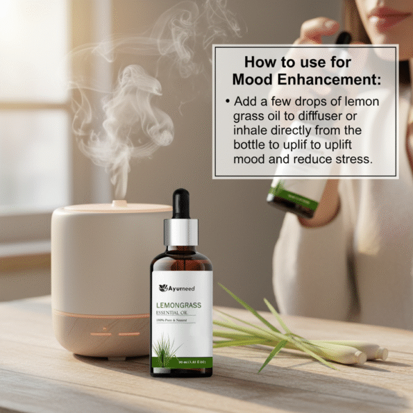 For Mood Enhancement: Add a few drops of lemongrass oil to a diffuser or inhale directly from the bottle to uplift mood and reduce stress.