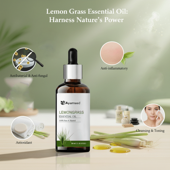 Antioxidant: Rich in antioxidants, lemongrass oil helps in fighting free radicals and promotes healthy skin.
