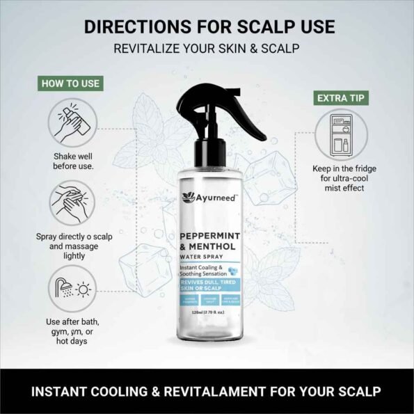 Beat the Indian heat with Ayurneed Peppermint & Menthol Water Spray – a multi-purpose cooling mist crafted with pure peppermint extract and menthol. Specially formulated to offer an instant cooling sensation, this refreshing spray is perfect for hot summer days, post-sun exposure, long travel hours, or just a quick pick-me-up.