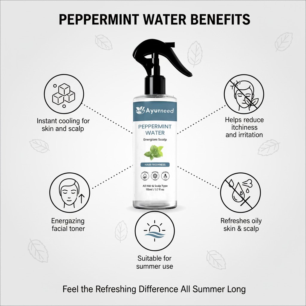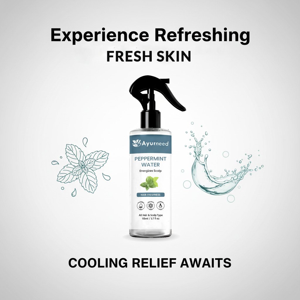 Ayurneed™ Peppermint Water Spray – 100% Natural Face & Body Mist for Cooling, Oil Control & Fresh Skin – 110ml