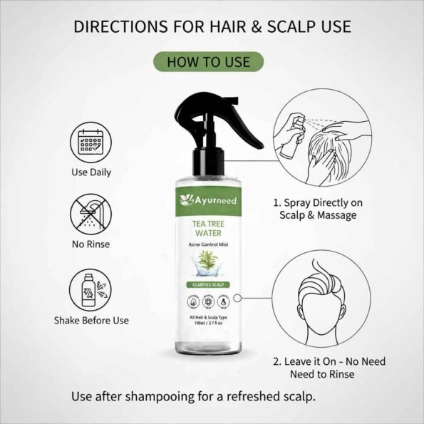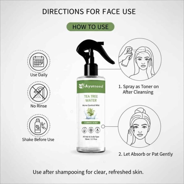 Ayurneed™ Tea Tree Water Spray – 100% Natural Face & Scalp Mist for Acne, Dandruff & Oil Control – 110ml