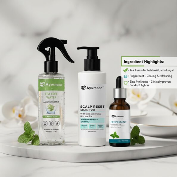 Scalp Detox & Dandruff Control Combo – Anti-Dandruff Shampoo + Tea Tree Water + Peppermint Oil | Soothe Itchy, Flaky Scalp Naturally